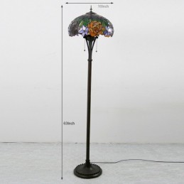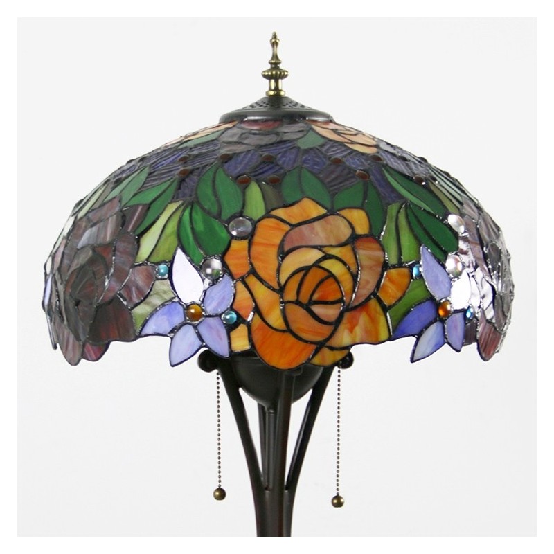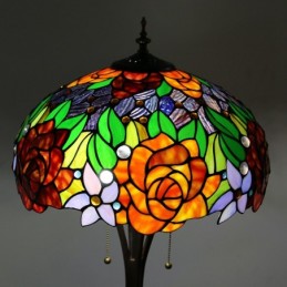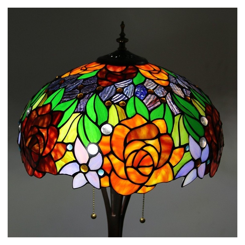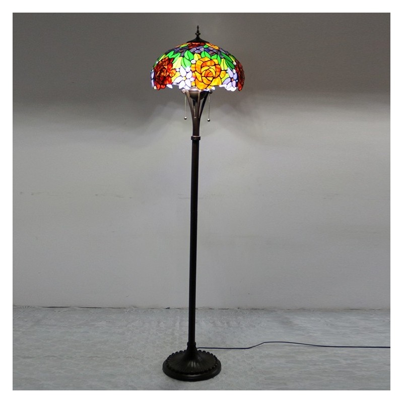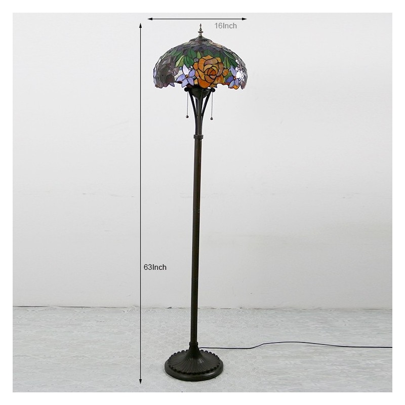 Tiffany Style Floor Standing Lamp W16H63 Inch Tall Stained Glass Red Rose Shade 2Antique Read Lighting