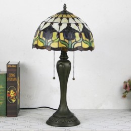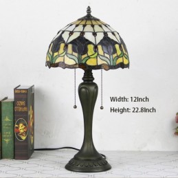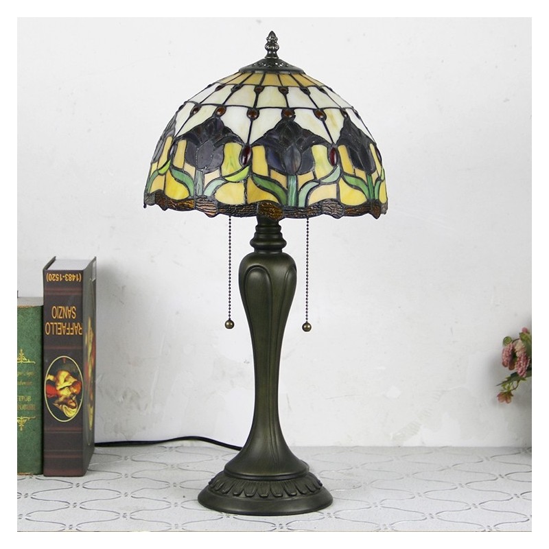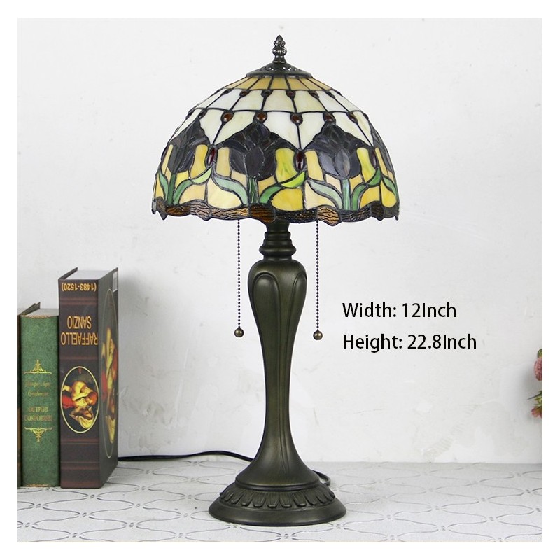 12 Inch Tiffany Style Desk Lamp Red Tulip Stained Glass Table Lamp Creative Bedroom Bedside Desk Light