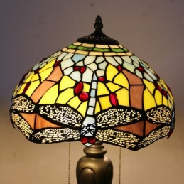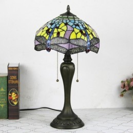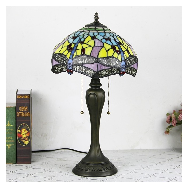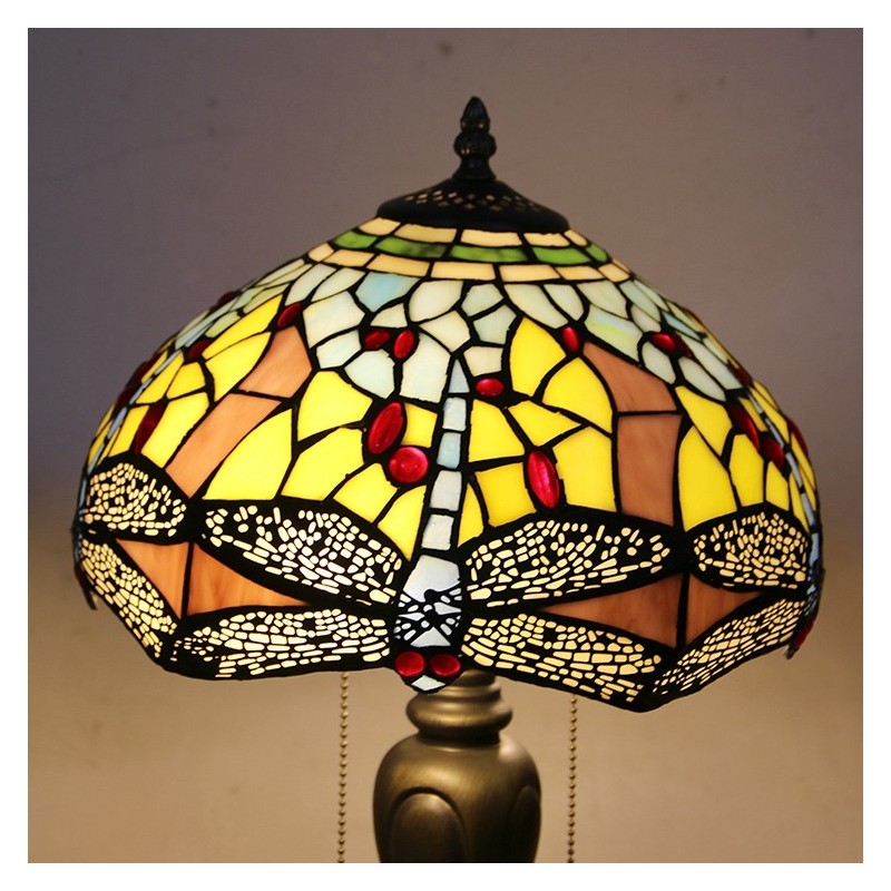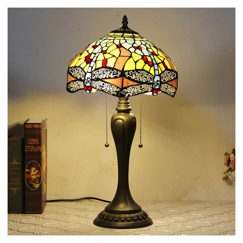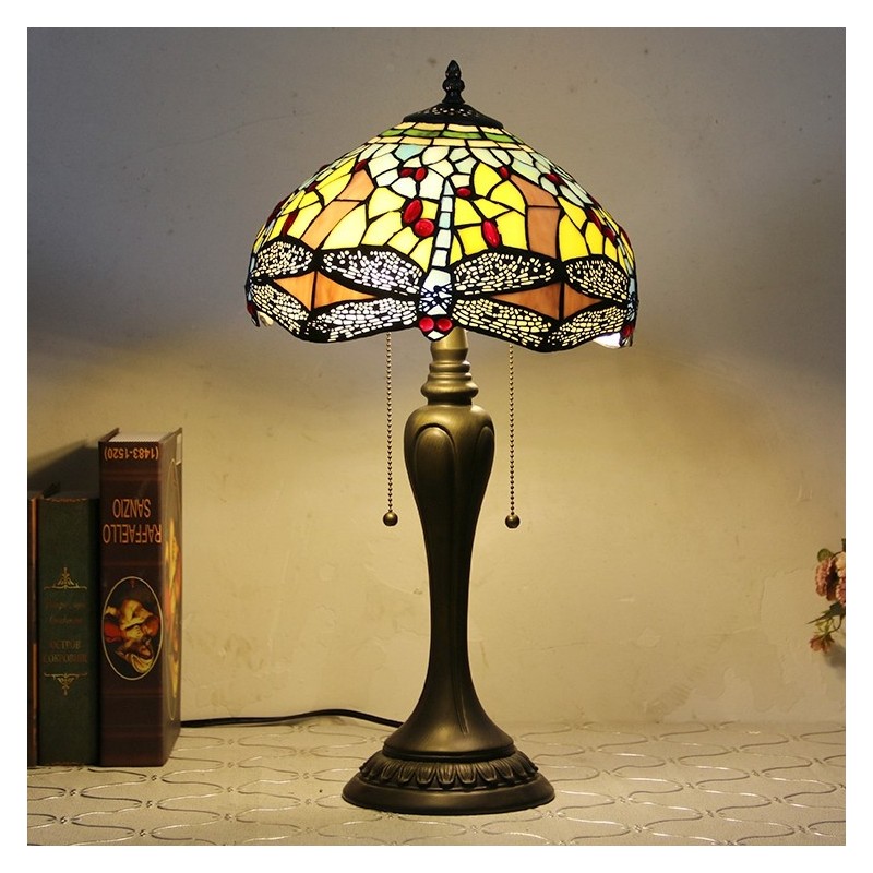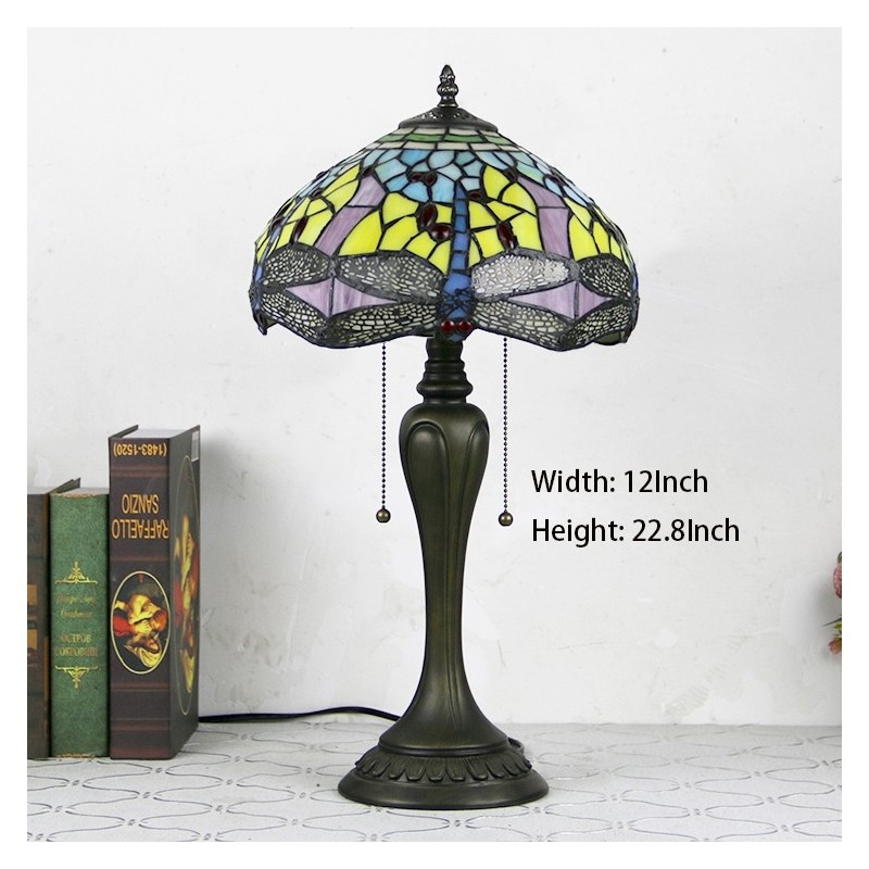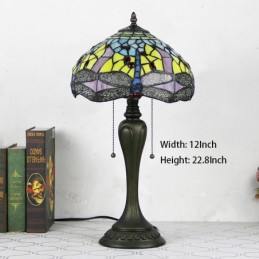 12In Tiffany Style Desk Lamp Yellow Dragonfly Stained Glass Table Lamp Creative Bedroom Bedside Desk Light