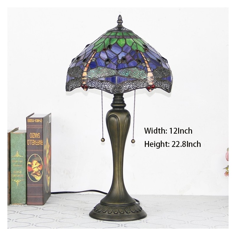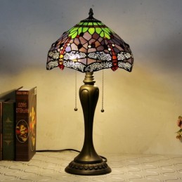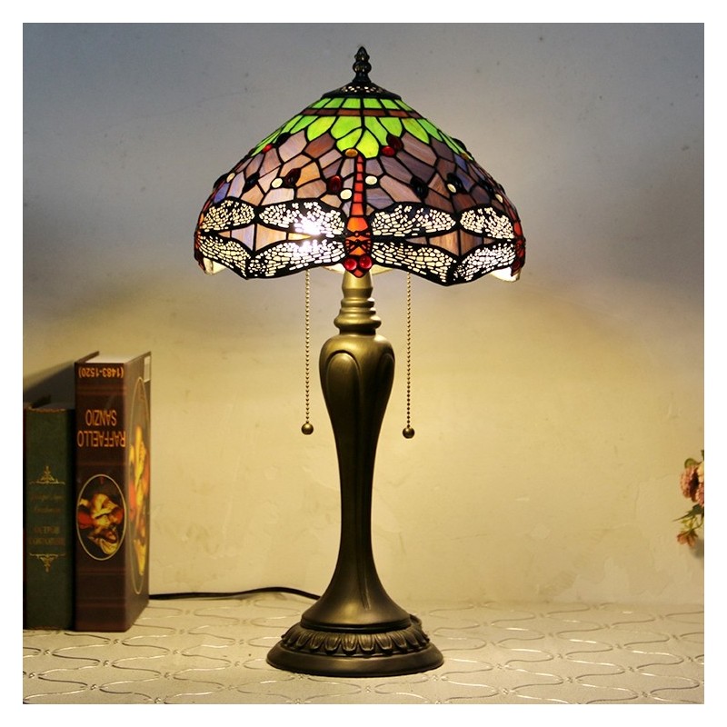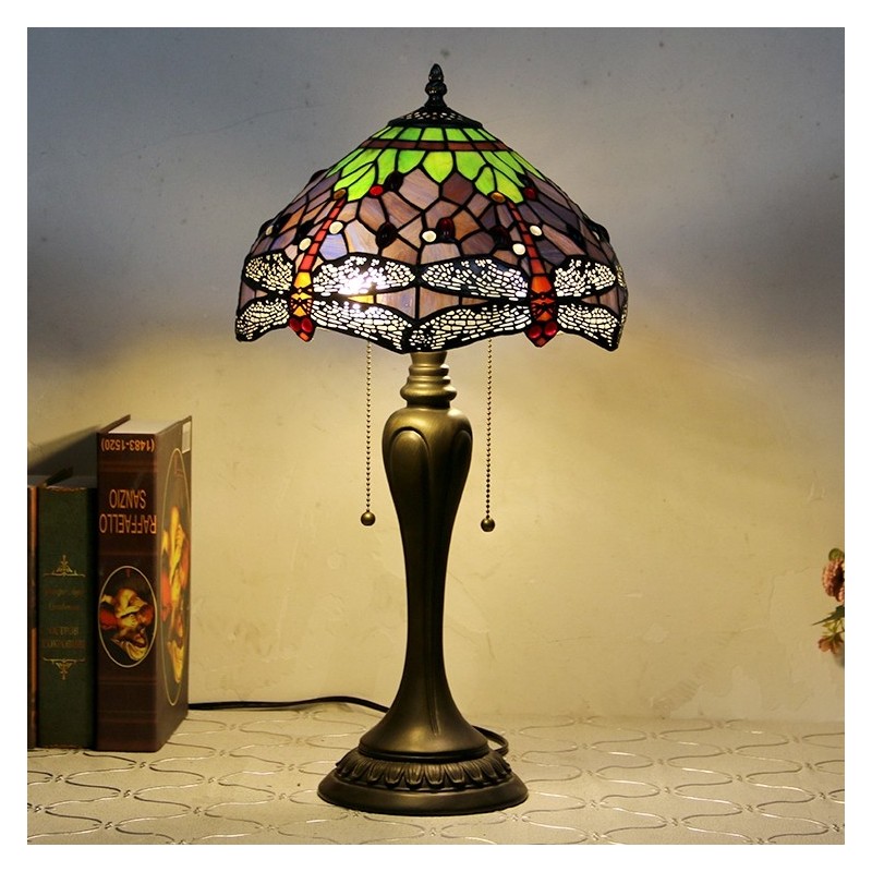 12In Tiffany Style Desk Lamp Purple Dragonfly Stained Glass Table Lamp Creative Bedroom Bedside Desk Light